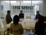 本日は社長室スタッフとの事前打ち合わせだけの予定であったが、突然岩田社長が、アップルコンピュータのスティーブ・ジョブズばりの真っ黒なファッションで登場。カリスマ経営者としての風格充分。コムサデモードで売っていそうな真っ黒のファッションは、無機質なモノトーンの建物によくマッチしており、年齢を感じさせないお洒落な雰囲気。