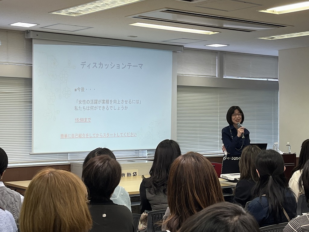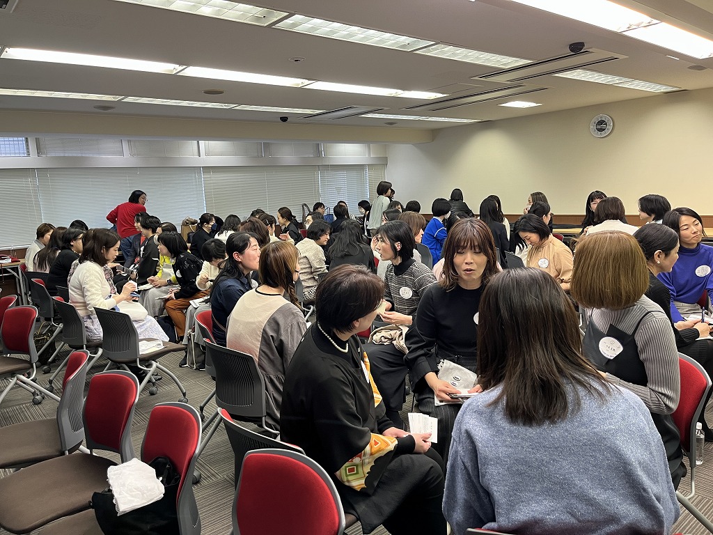3月2日、女性リーダー育成コース の修了生が「期を超えた交流の機会を」という趣旨で修了生交流会を企画し、約70名の修了生が集いました。「元気にしてた?」「最近どう?」…久しぶりの再会に懐かしむ声と笑顔…。会場内は自然に明るく熱い雰囲気になりました。