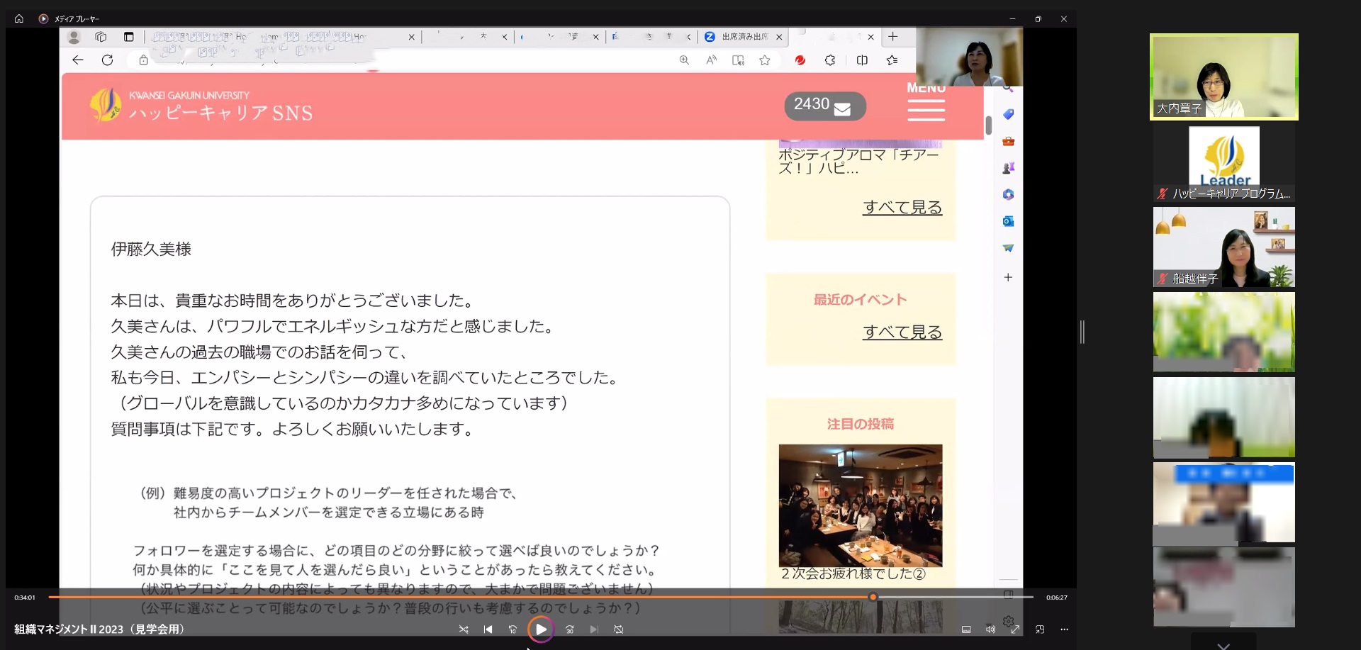 3月18日、ハッピーキャリアプログラム-女性リーダー育成コース-11期生募集のための授業見学会がオンラインで行われました。
