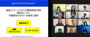 3月27日、ハッピーキャリアプログラム-女性リーダー育成コース-11期生募集のための第1回受講説明会がオンラインにて開催されました。