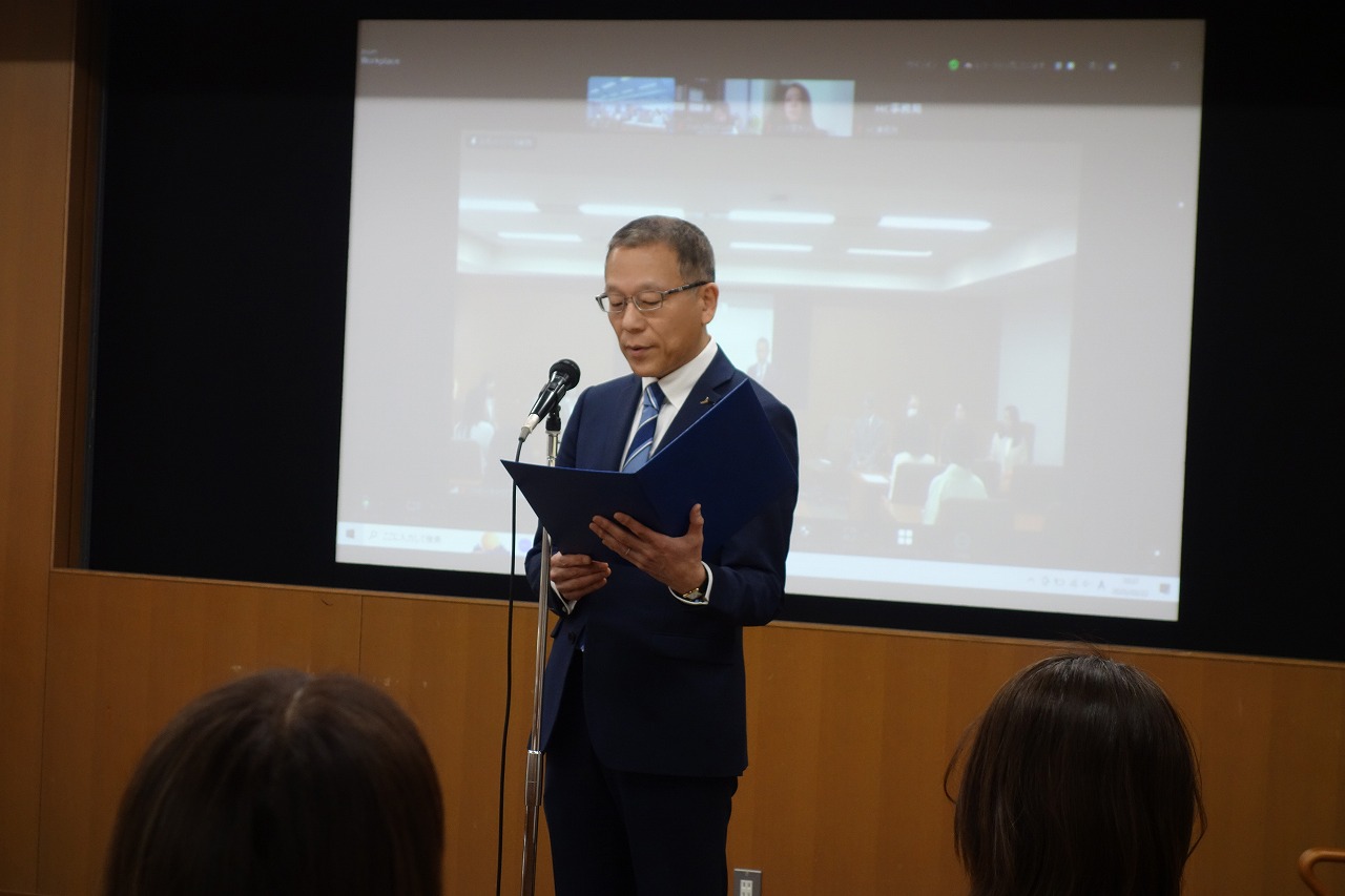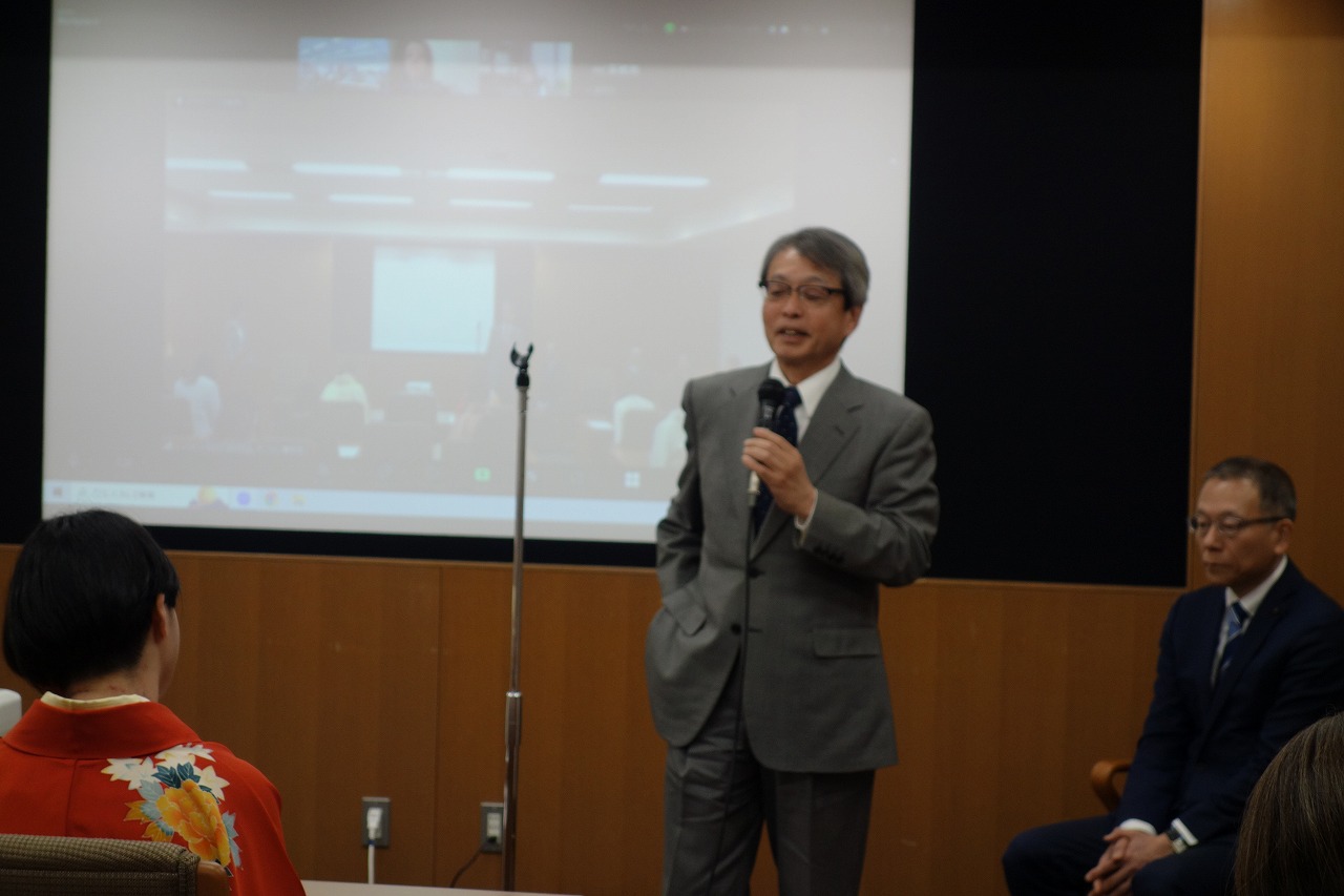 初めに、経営戦略研究科長の山地範明教授より、仕事、家庭に学びを両立させてきた受講者へのねぎらいの言葉と合わせ、今後に向けてのエールをいただきました。