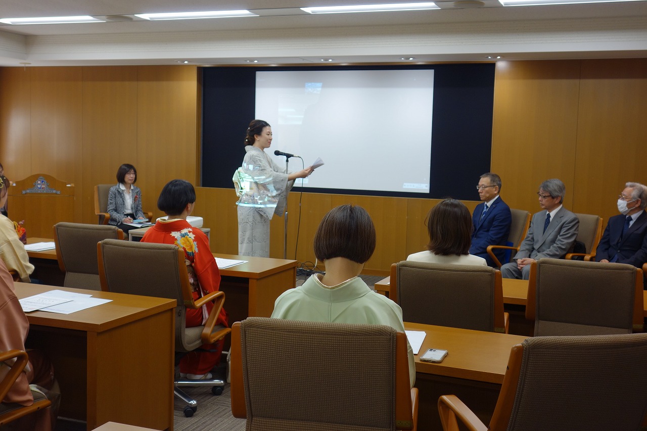 履修証明書等の授与、ご来賓や講師からのお祝いのメッセージ、そして修了生代表の答辞と進んでいきましたが、緊張のなかにもやり遂げたという喜びがひしひしと感じられました。