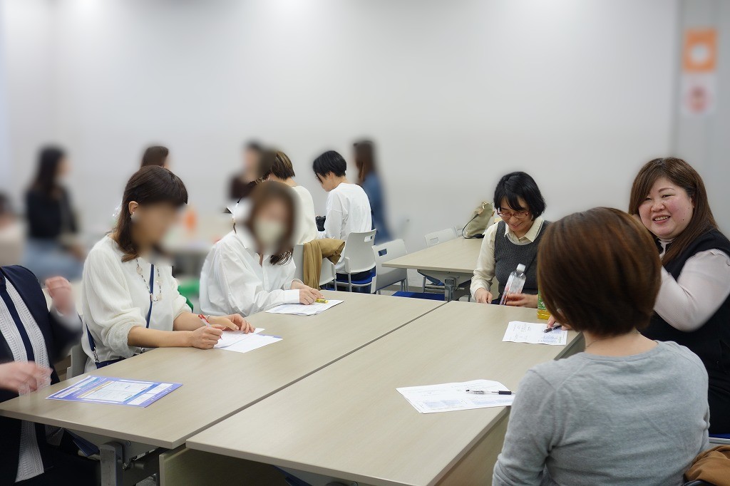 4月12日、女性リーダー育成プログラム 12期生募集のための第1回説明会が大阪梅田キャンパスにて開催されました。今年から、名称、内容ともにリニューアルし、新プログラムの概要説明後、修了生を囲んでの恒例の質問会を行いました。修了生は参加者一人ひとりの疑問や質問に丁寧に対応していましたが、各テーブルから笑い声や悩み相談もありで、初対面とは思えないフレンドリーな雰囲気となりました。
