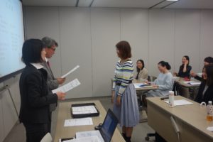 また、修了生や、ゲスト講師の伊藤久美氏、中野星子氏、その他このプログラムに関わった多くの方からお祝いのメッセージをいただきました。そして、4期生を代表して山梨顕子さんから答辞として、数多くの学びとともに、ともに学んできた仲間への感謝の言葉をいただきました。この日、4期生25名はとても晴れやかな表情で、時に笑いのこぼれる和気あいあいとした修了式となりました。既に卒業旅行も計画中ということで、修了後も互いに励ましあい、支えあえる大切な、一生の友ができたのではないかと思います。