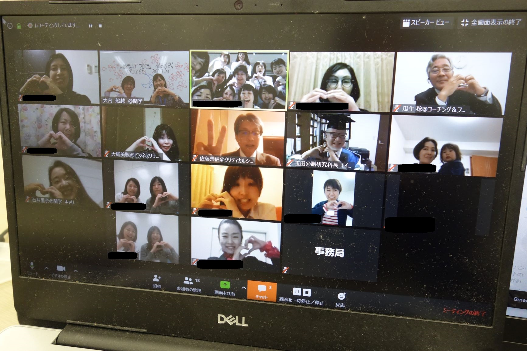 女性リーダー育成コースの修了式が3月23日に執り行われ、6期生が巣立っていきました。新型コロナの影響で修了式の中止も検討しましたが、今年度から始まった大学連携オンラインコースの実績を活かし、午前中の仕事復帰・起業コースの修了式に続いてオンラインで開式し、6期生はそれぞれの職場で、自宅で修了式を迎えました。