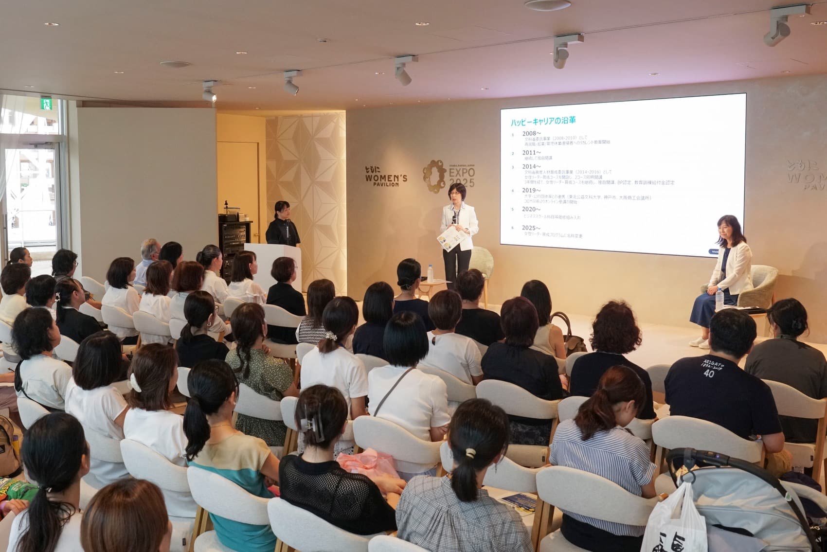 2025年、大阪・関西万博の公式パビリオン「ウーマンズパビリオン」WAスペースにて、本学女性活躍推進研究センターと女性リーダー育成プログラムの共催によるトークショー「リカレント教育から始まるキャリア変革〜人生を動かす学び〜」を開催しました。その開催に先立ち、本プログラム修了生を対象にアンケート調査を実施(回答者118名)。修了後も続く学びの効果と、キャリア・人生への影響が明らかになりました。